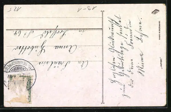 alte Ansichtskarte, gelaufen 1912, Eckknicke unten, Bugspur oben mittig, Briefmarke entfernt, rückseitig Oberflächenschaden