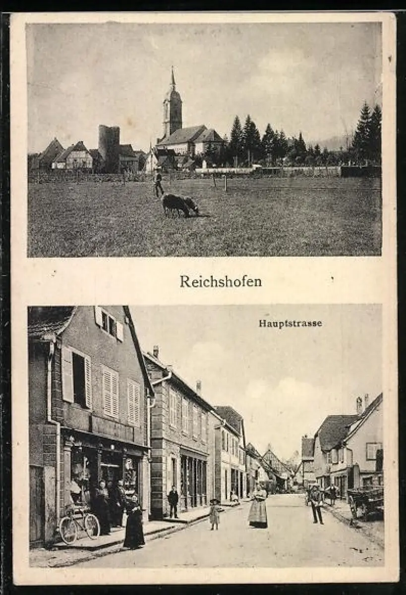 AK Reichshofen, Hauptstrasse und Ortsansicht mit Geschäften