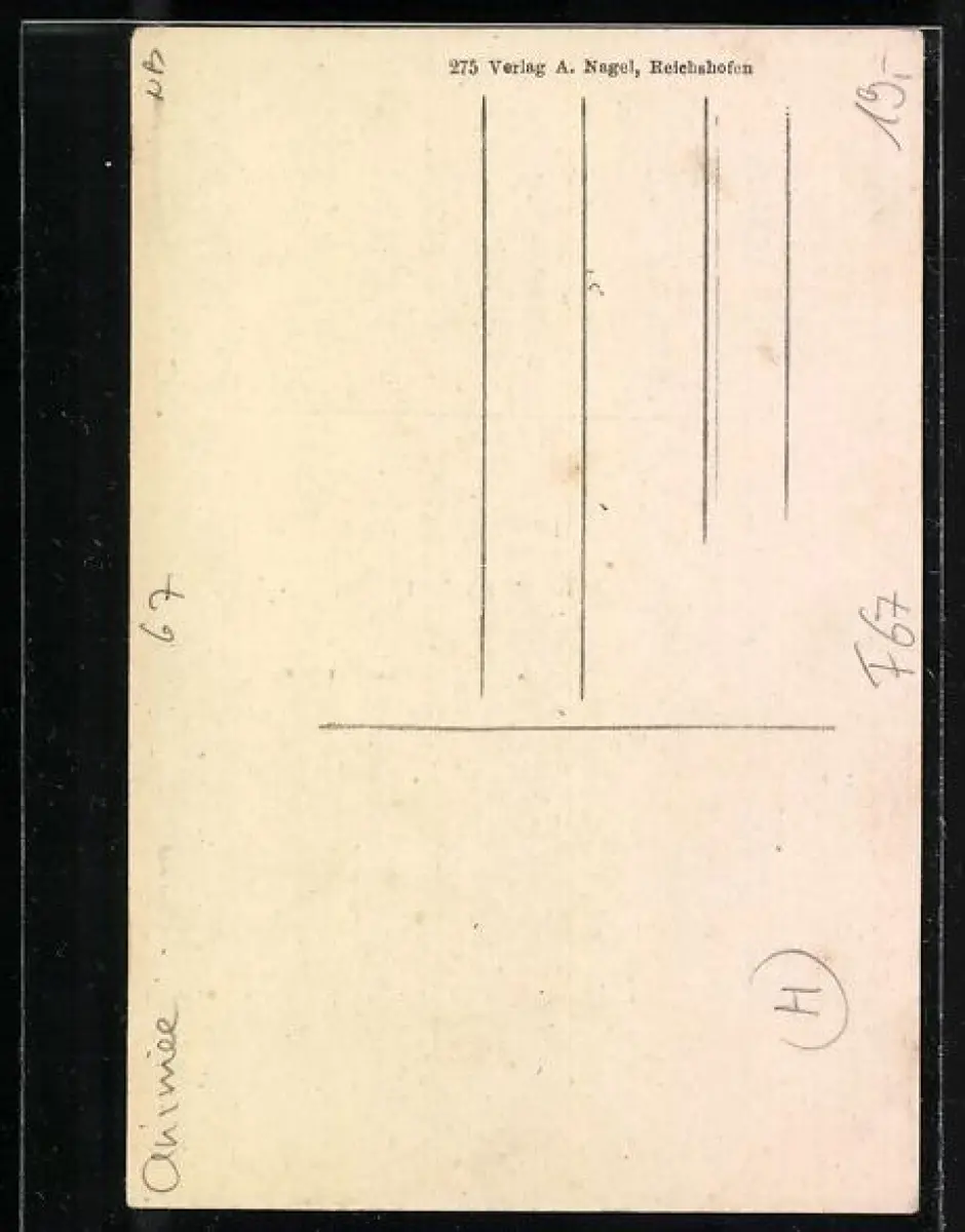 Personenbezogene Daten auf der Rückseite der Karte wurden durch blauen Textmarker unkenntlich gemacht. Die blauen Stellen sind auf die Vorderseite durchgeweicht und wirken sich negativ auf das Postkartenfoto aus