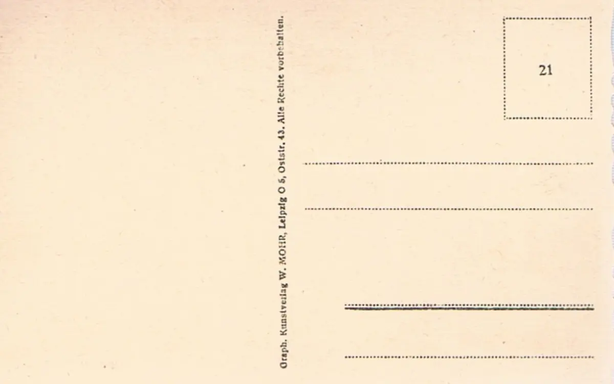 Leipzig O5, Oststr. 43: Graph. Kunstverlag W. Mohr, Karte, 9,0 x 14,0 cm, Mit gezackztem Rand