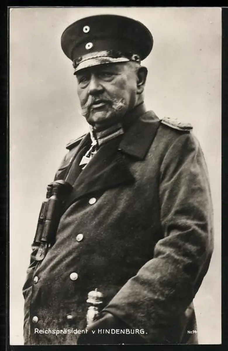 AK Reichspräsident Paul von Hindenburg in Uniform und mit Fernglas