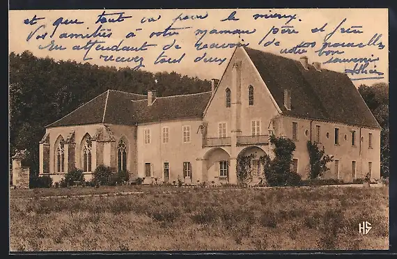 AK Reigny /Vermenton, Abbaye de Reigny vue de face avec jardin et forêt en arrière-plan
