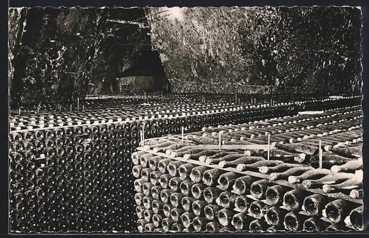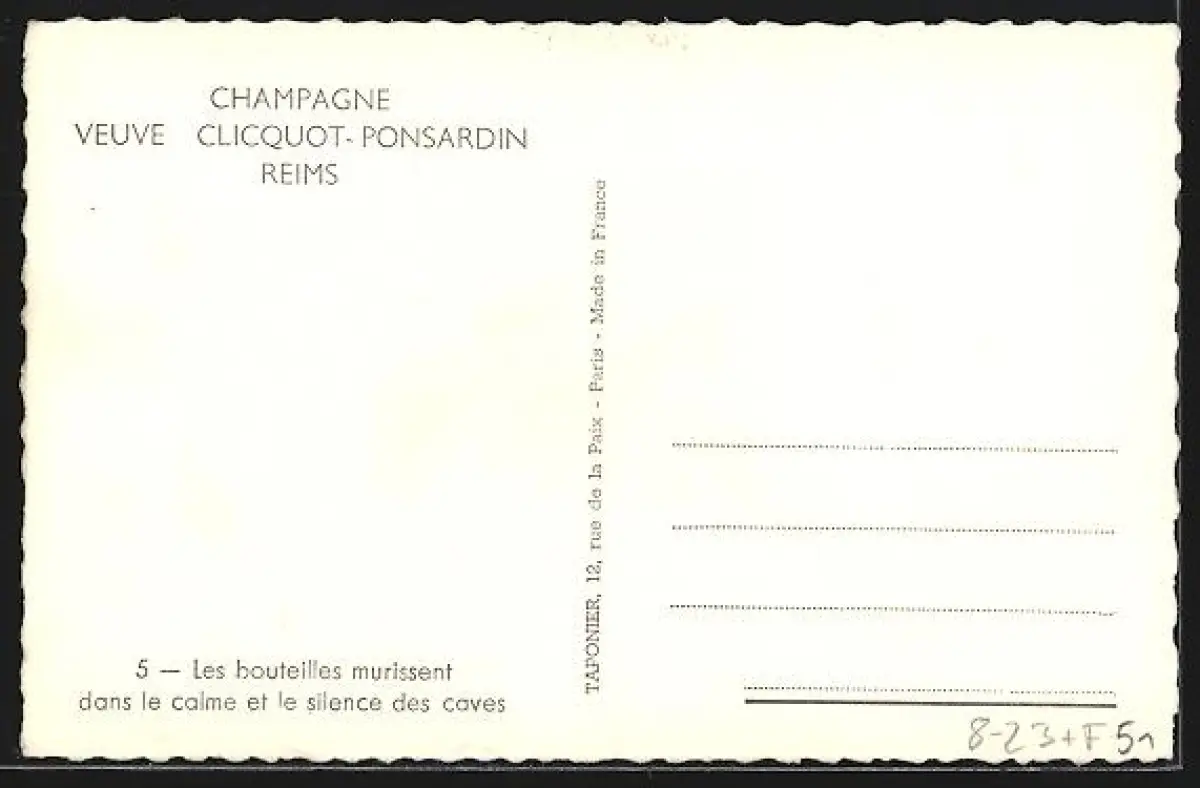 AK Reims, Champagne Veuve-Clicquot-Ponsardin, Les bouteilles murissent dans le calme et le silence des caves, Wein
