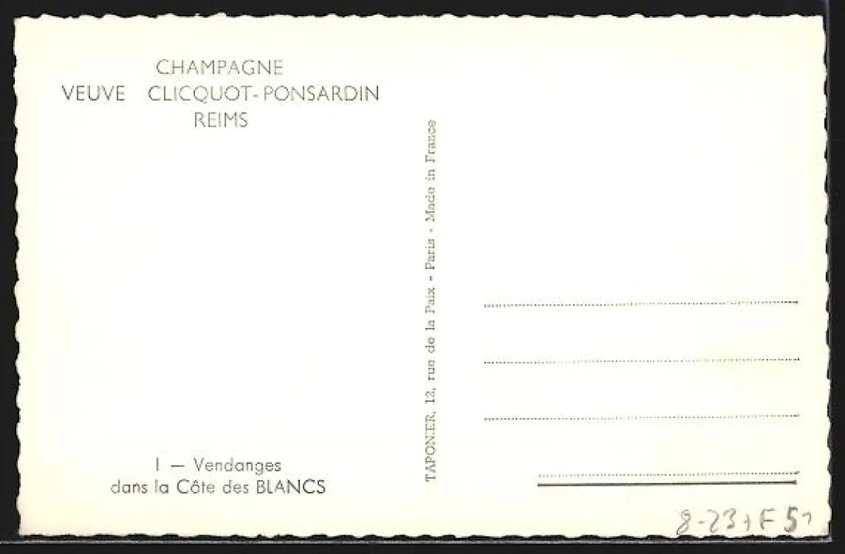 AK Reims, Champagne Veuve Clicquot-Ponsardin, Vendanges dans la Cote des Blancs, Wein