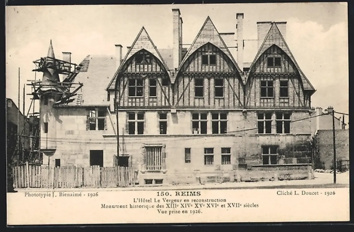 AK Reims, L`Hôtel Le Vergeur en reconstruction, Vue prise en 1926