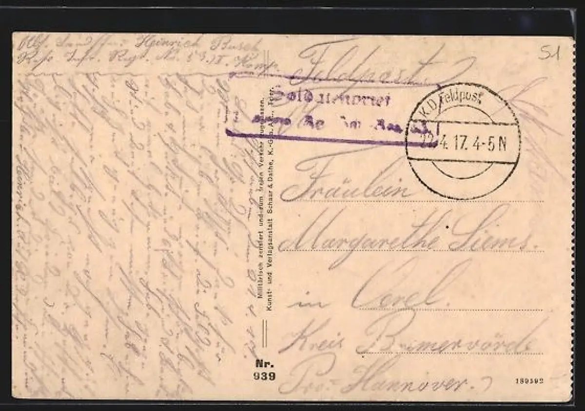 alte Ansichtskarte, gelaufen 1917, guter Zustand