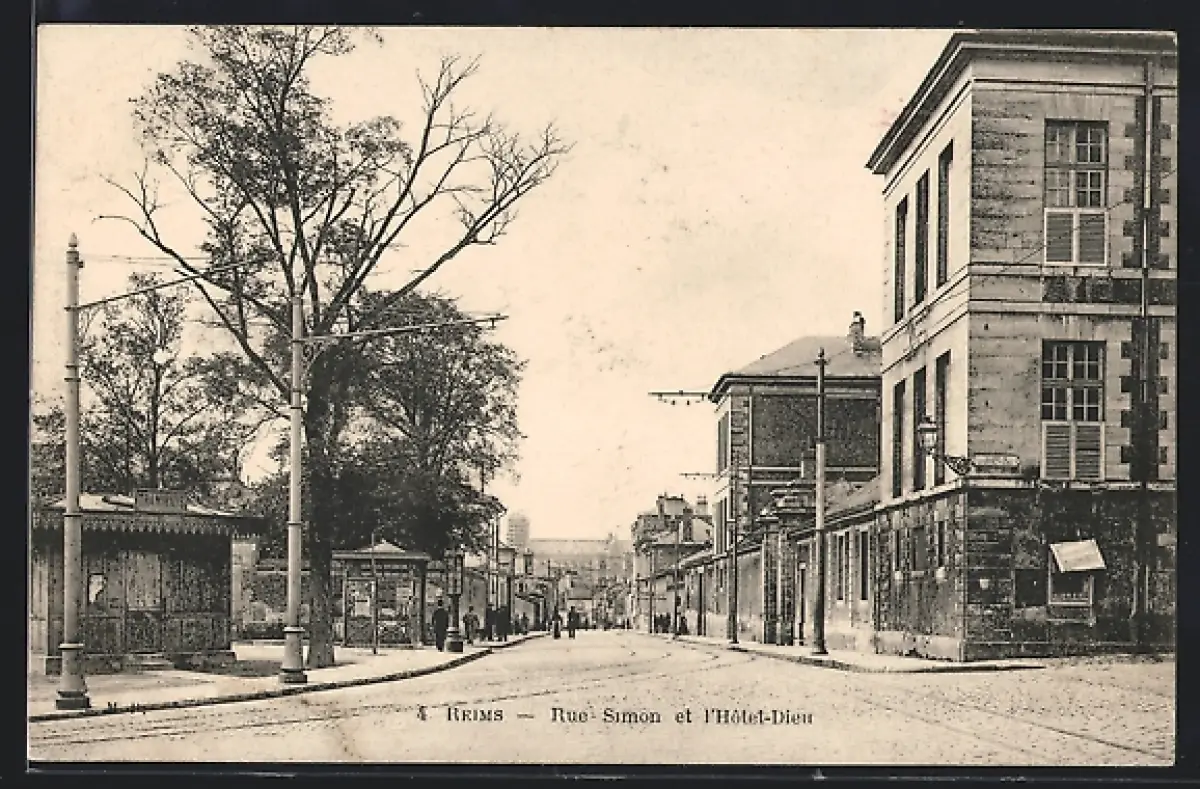 AK Reims, Rue Simon et l`Hôtel-Dieu, Ortspartie