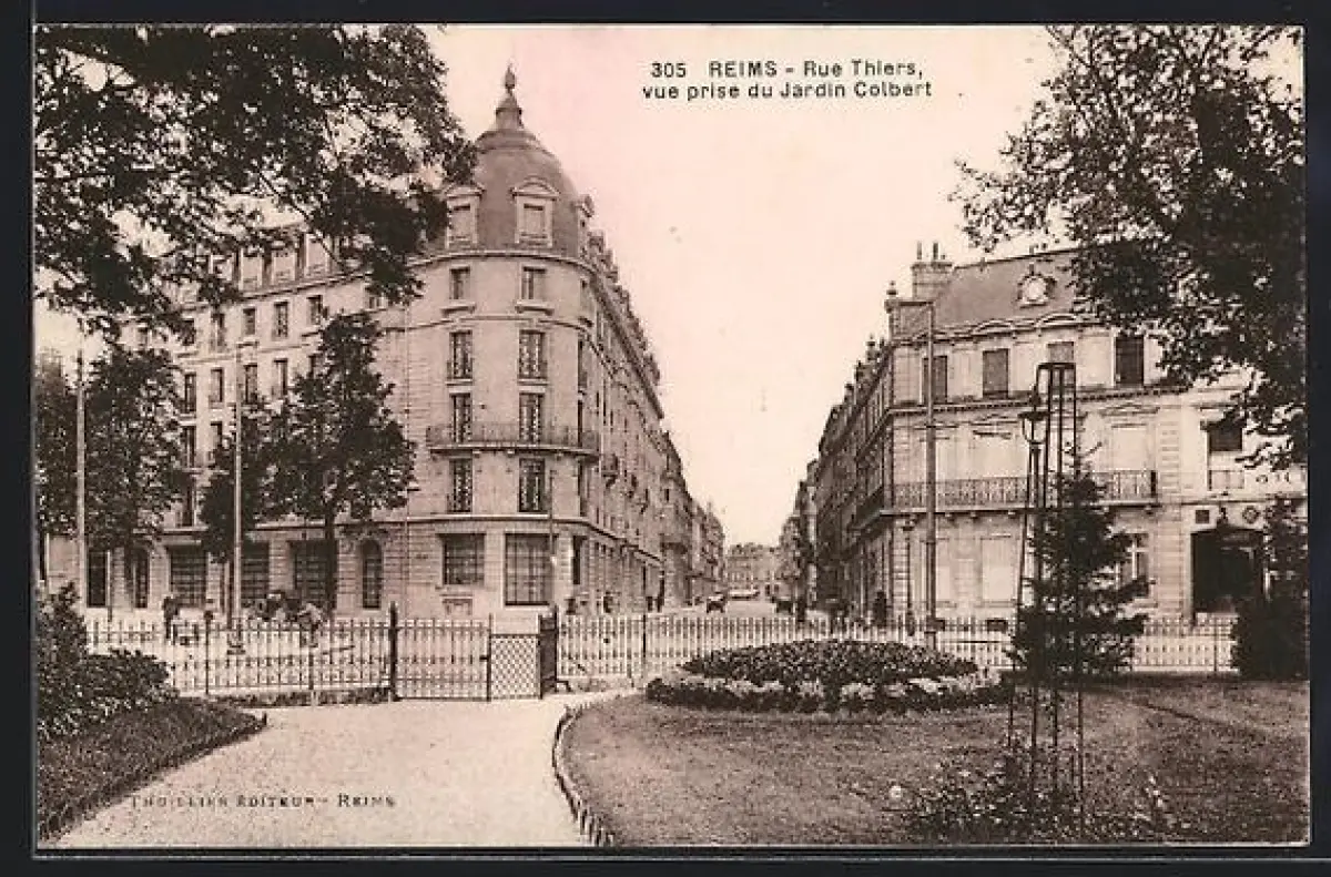 AK Reims, Rue Thiers vue prise du Jardin Colbert