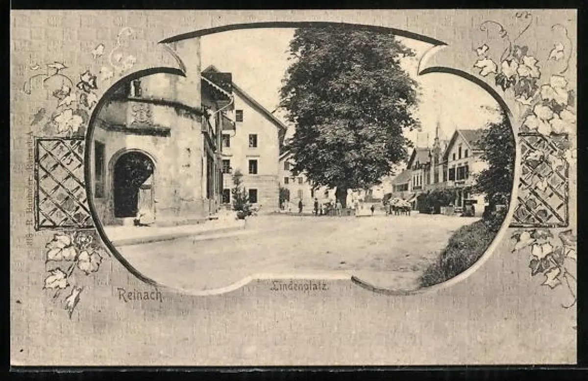 AK Reinach /AG, Lindenplatz im Weinblätter-Passepartout