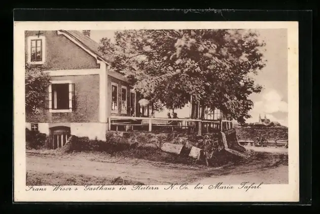 AK Reitern bei Maria Taferl, Franz Wisers Gasthaus mit Veranda, Strassenansicht