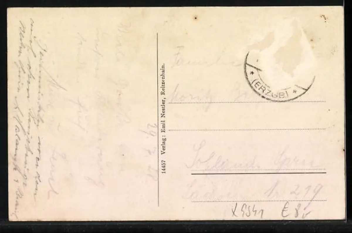 alte Ansichtskarte, gelaufen, Briefmarke entfernt, rückseitig Oberflächenschaden, guter Zustand