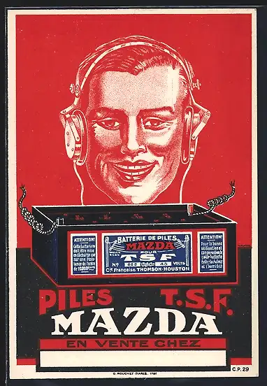 AK Reklame Batterie Mazda, Mann mit Kopfhörer
