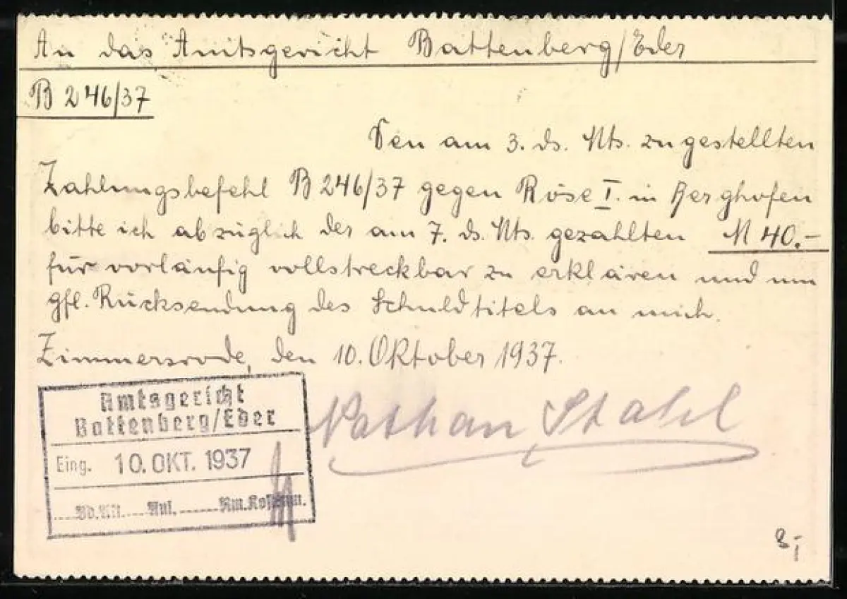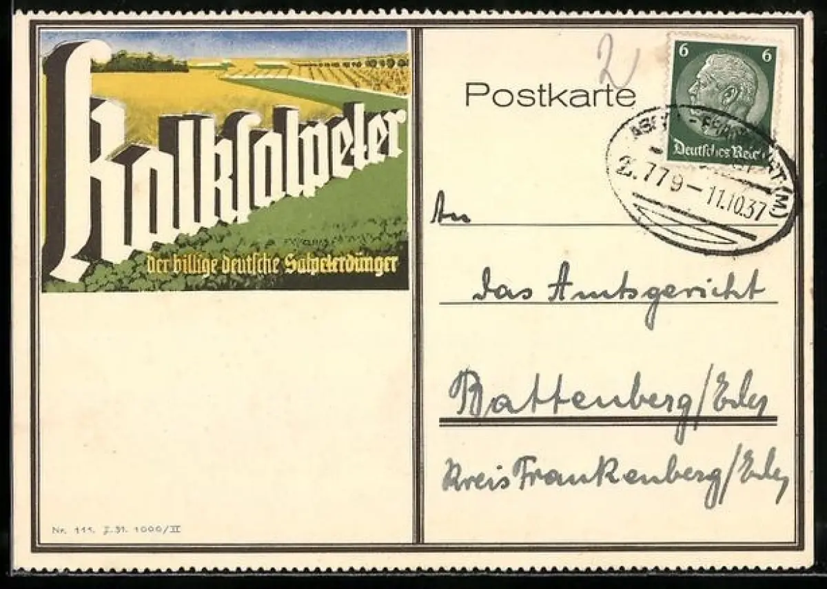 gelaufen 1937, kein AK-Zudruck, guter Zustand