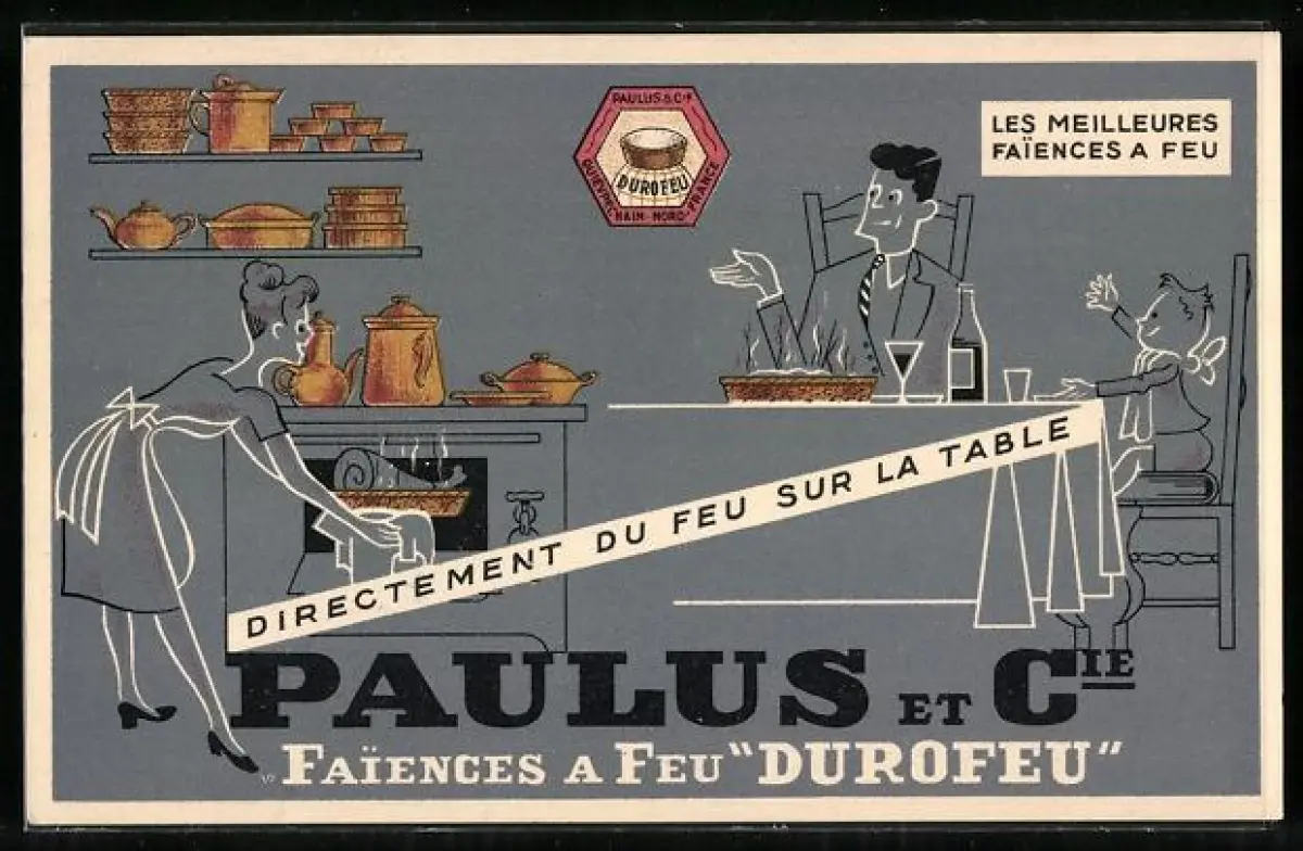 AK Reklame Kochgeschirr von Paulus et Cie Faiences a Feu Durofeu