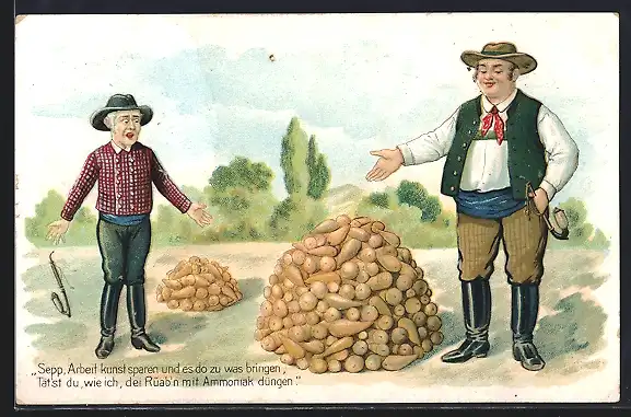 AK Reklame für Ammoniak-Dünger, Bauern vergleichen ihre Rübenernte