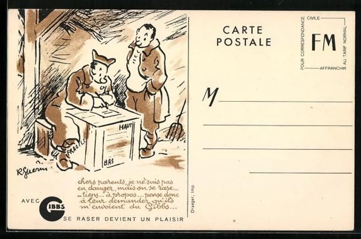AK Reklame für Gibbs, Rasiercreme, Soldat beim Schreiben der Feldpost
