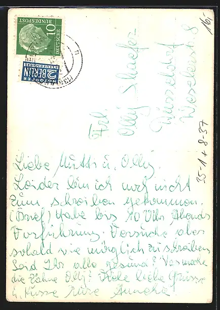 alte Ansichtskarte, gelaufen 1954, Eckknick li. oben, guter Zustand