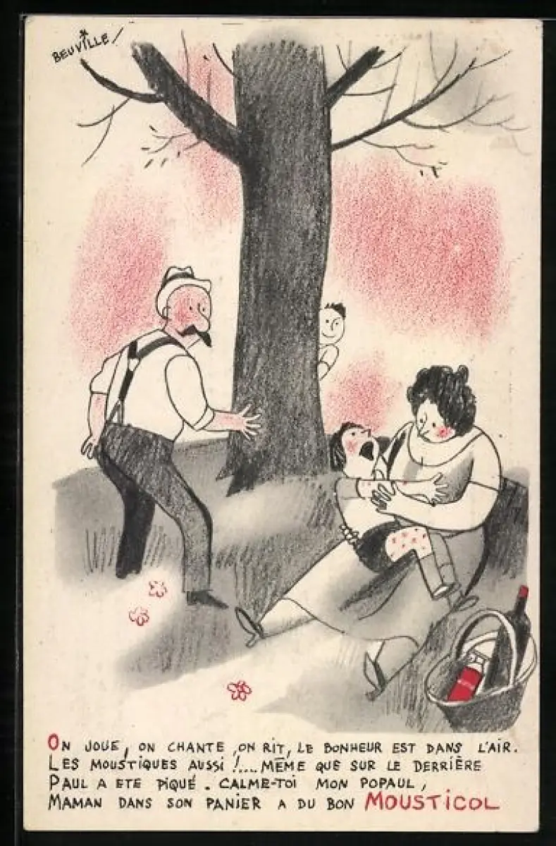 AK Reklame für Mousticol, Veha, Norex, Combustol, Kind leidet unter Pusteln an den Beinen
