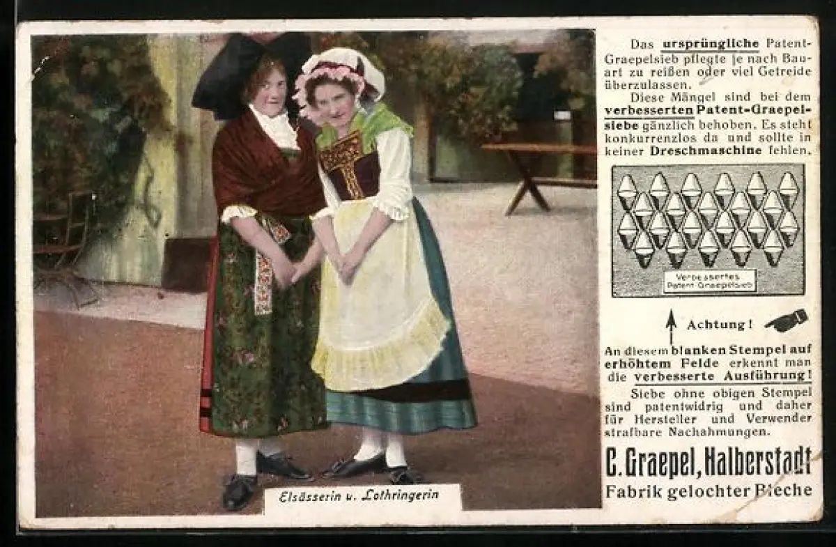 AK Reklame für Patent-Graepelsieb, Elsässerin und Lothringerin in Tracht