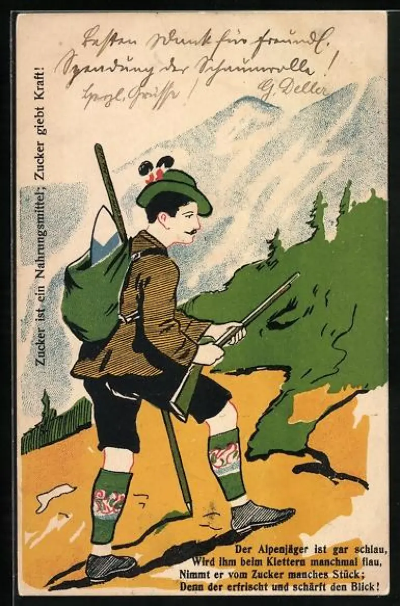 AK Reklame für Zucker als Erfrischung auf der Jagd