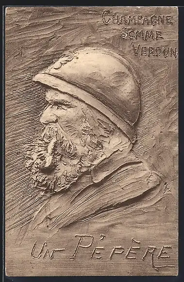 AK Relief eines franz. Soldaten, Champagne, Somme, Verdun, un Pépère