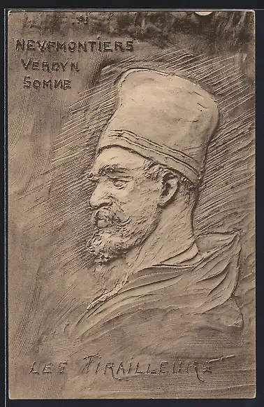 AK Relief eines franz. Soldaten, Neufmontiers, Verdun, Somme - Les Tirailleurs