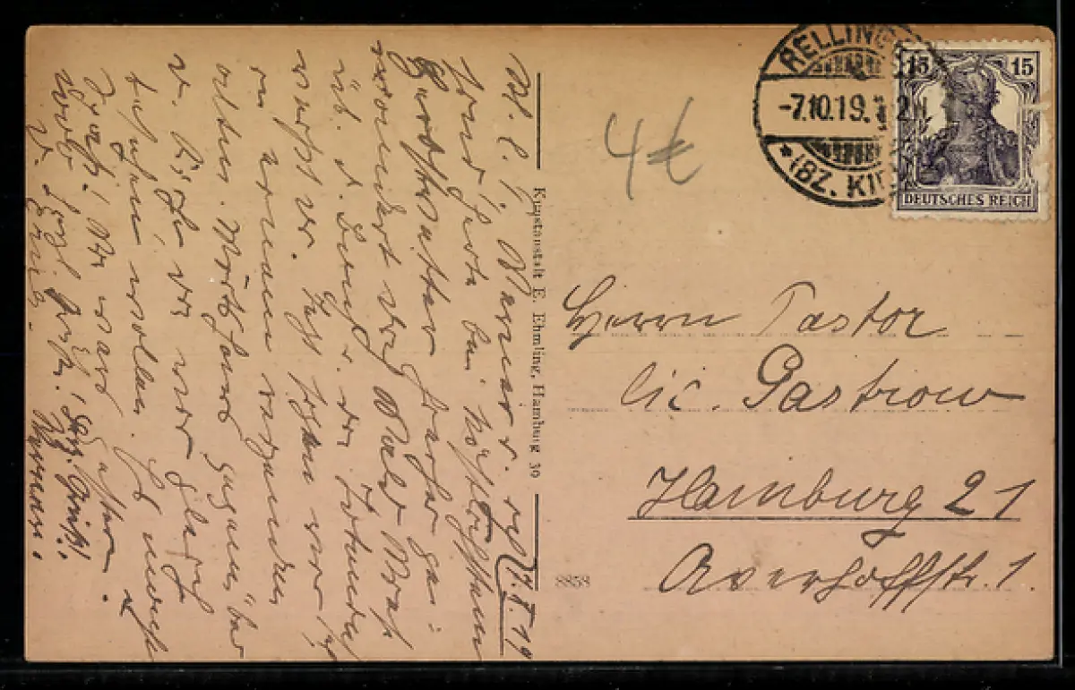 alte Ansichtskarte, gelaufen 1919, Briefmarke entfernt, minimaler Einriss li. mittig, guter Zustand