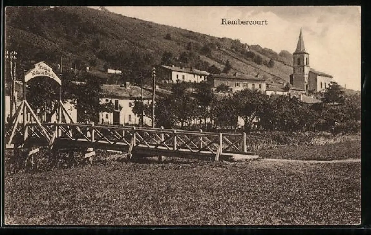 AK Rembercourt, Ortsansicht mit König-Wilhelm-Brücke u. Kirche