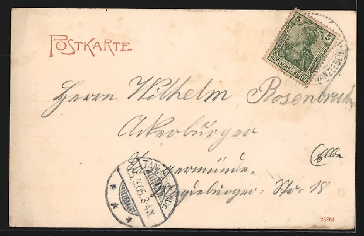 alte Ansichtskarte, gelaufen 1905, Stempelspur, Eckknick rechts unten, guter Zustand