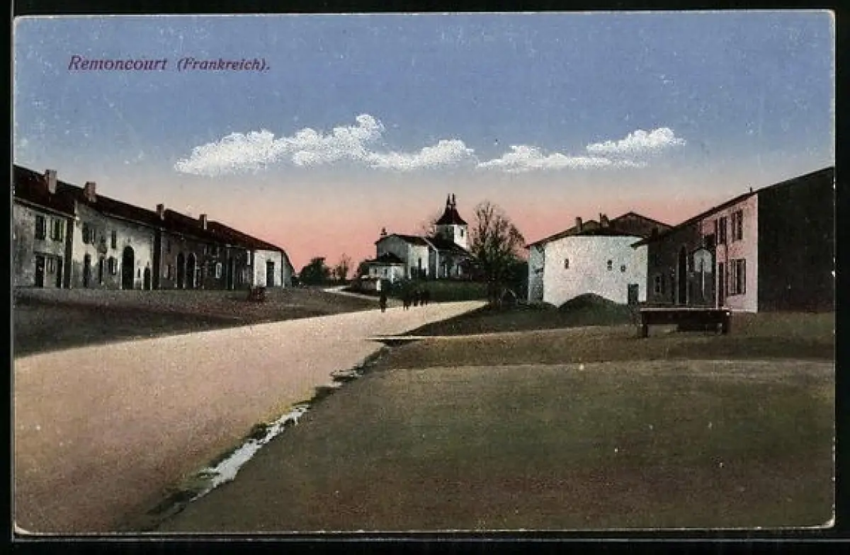AK Remoncourt, Strassenpartie mit Kirche