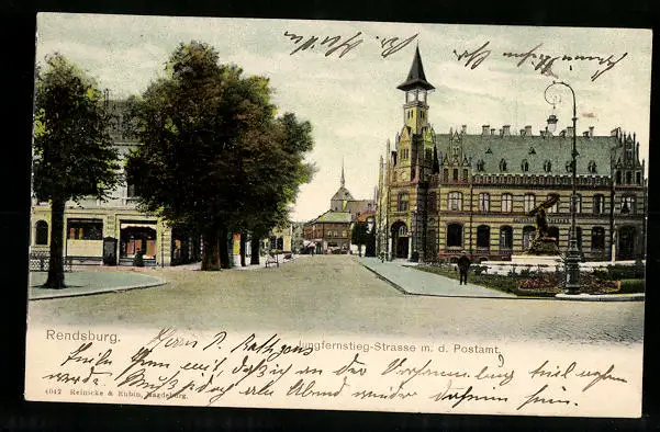 AK Rendsburg, Jungfernstieg-Str. mit Postamt