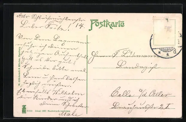 alte Ansichtskarte, gelaufen 1914, Briefmarke entfernt, Eckknick re. unten, guter Zustand