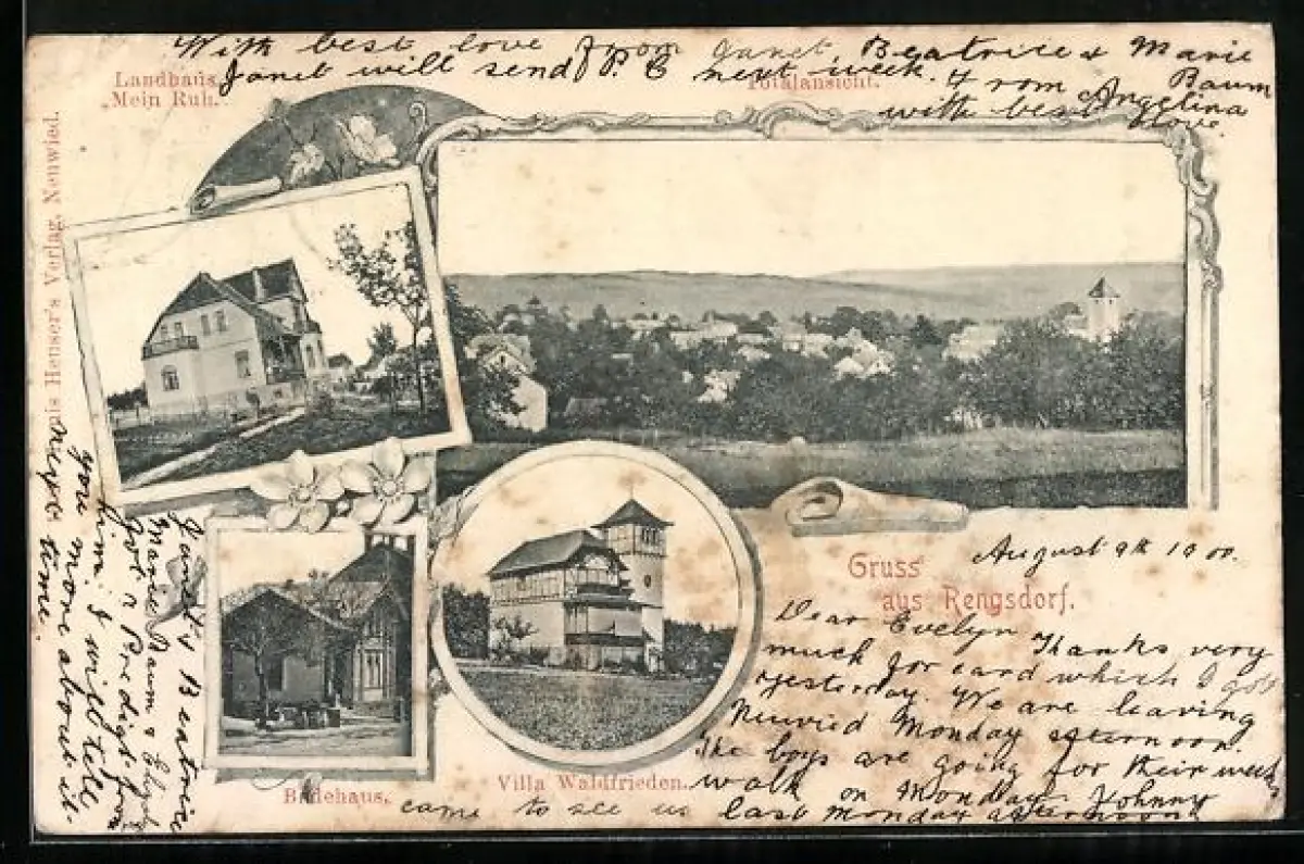 AK Rengsdorf, Landhaus Mein Ruh, Badehaus und Villa Waldfrieden