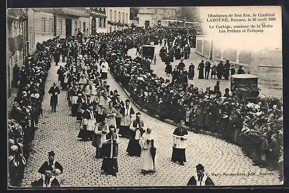 AK Rennes, Obsèques du Cardinal Labouré, le cortège contour de la Motte, les prélats et évêques
