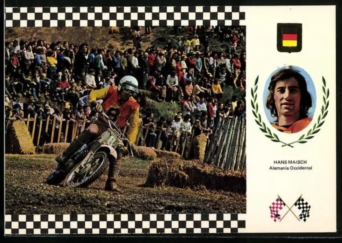 AK Rennfahrer Hans Maisch auf Maico-Motorrad