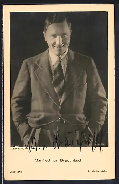 AK Rennfahrer Manfred von Brauchitsch, orig. Tinten-Autograph