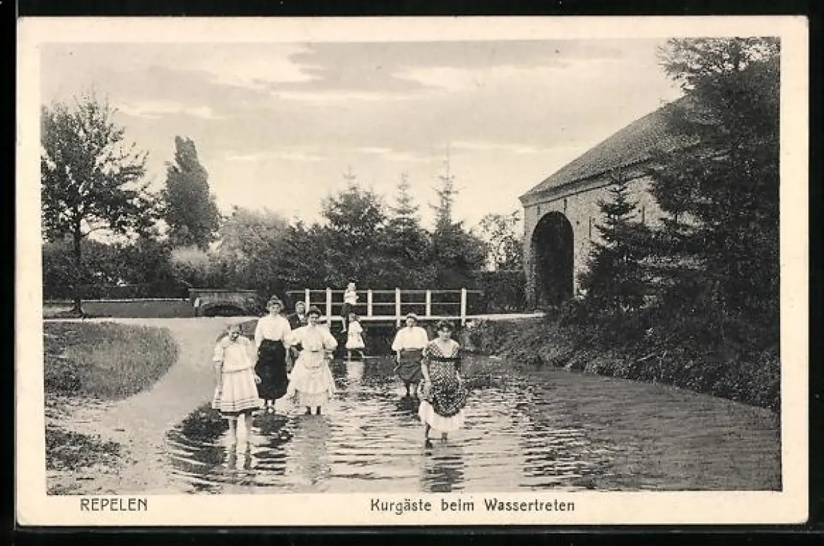 AK Repelen, Kurgäste beim Wassertreten, Panorama
