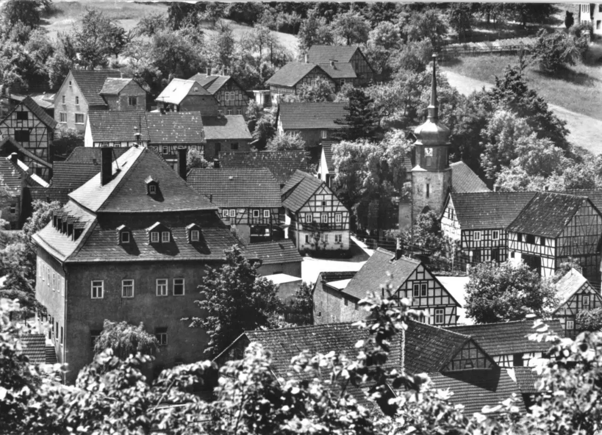 Ansichtskarte Reschwitz Kr. Saalfeld Teilansicht mit Kirche Erhaltung I-II, Beförderungsspuren postalisch gelaufen, gestempelt: Saalfeld, 27.9.80 Druckvermerk: 1980 Herstellungsland: DDR Verlag: Bild und Heimat, Reichenbach i. V. - 01 10 07 207