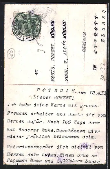 alte Ansichtskarte, gelaufen, Eckknicke unten, guter Zustand