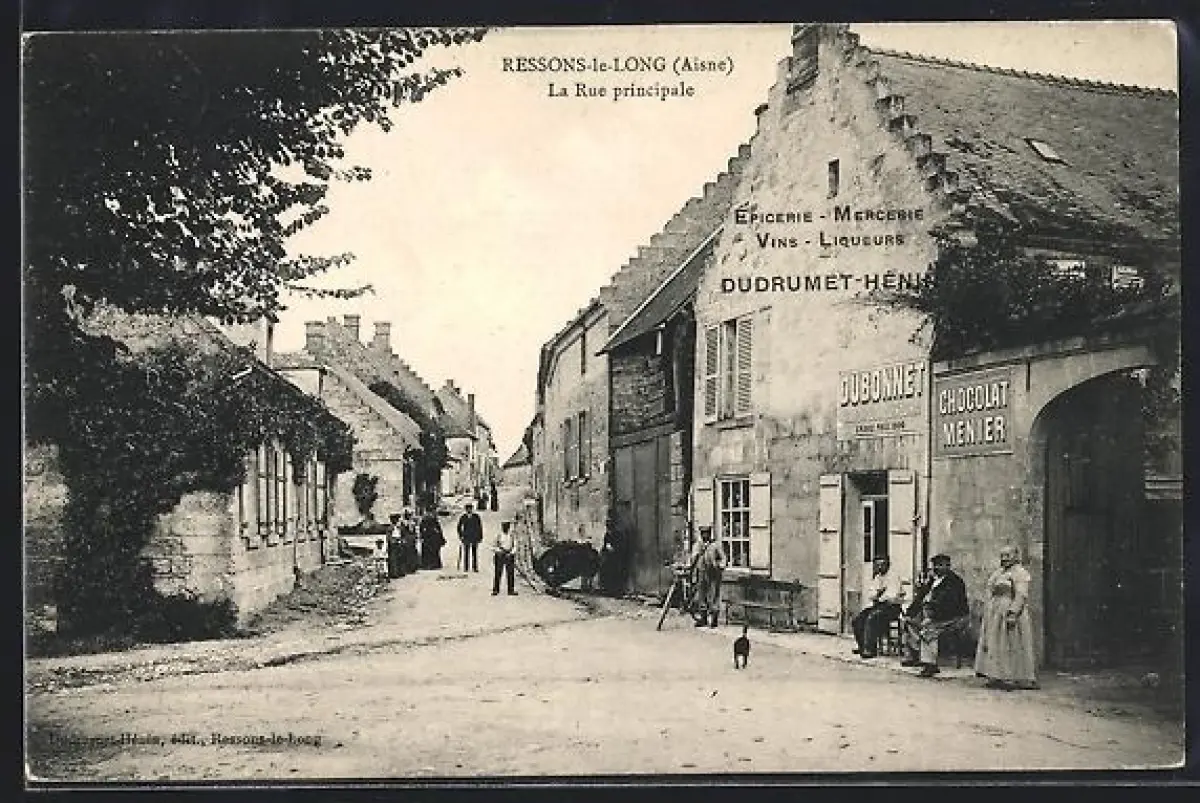 AK Ressons-le-Long /Aisne, La Rue principale avec épicerie et habitants