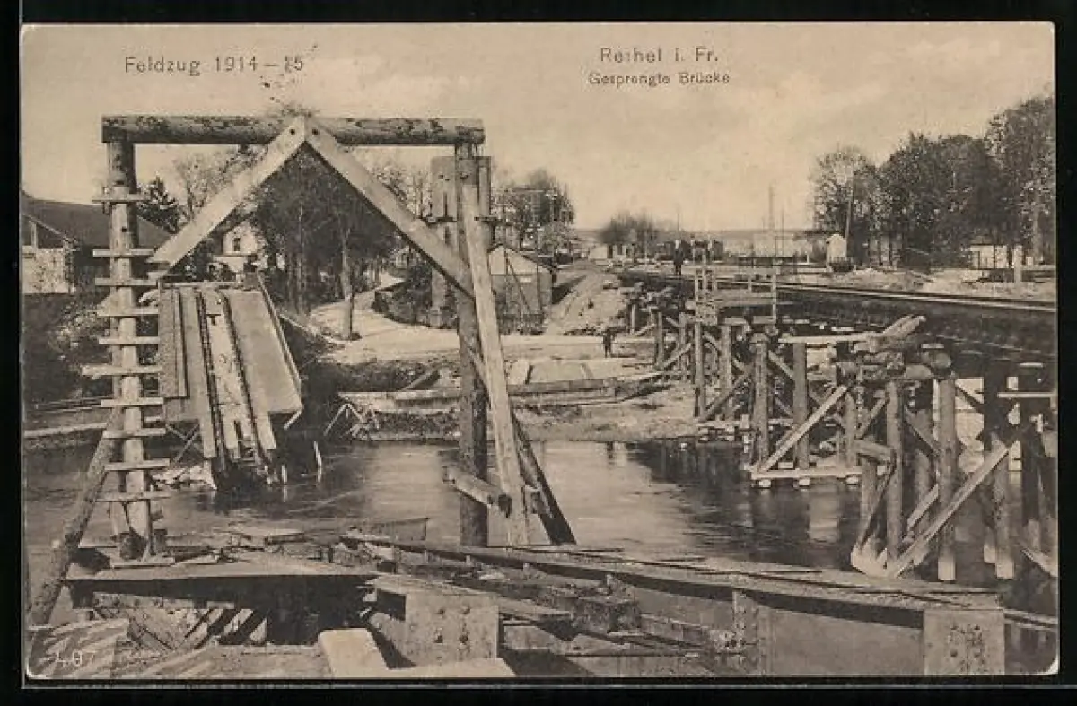 AK Rethel, Gesprengte Brücke, Feldzug 1914-15