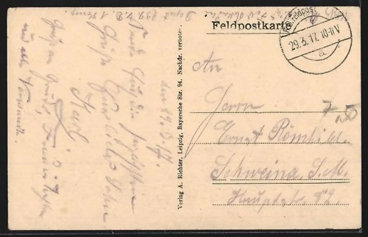 alte Ansichtskarte, gelaufen 1917, Bugspur oben rechts, guter Zustand