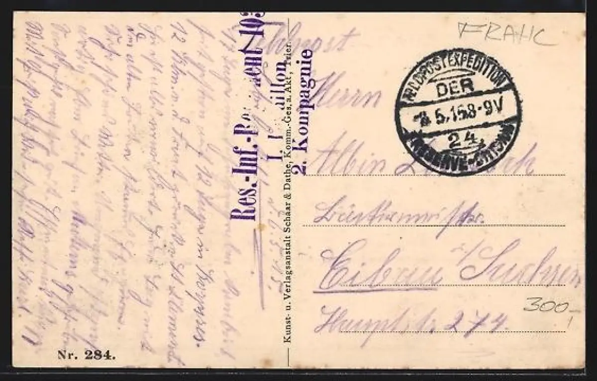 alte Ansichtskarte, gelaufen 1915, Stempelspur, guter Zustand