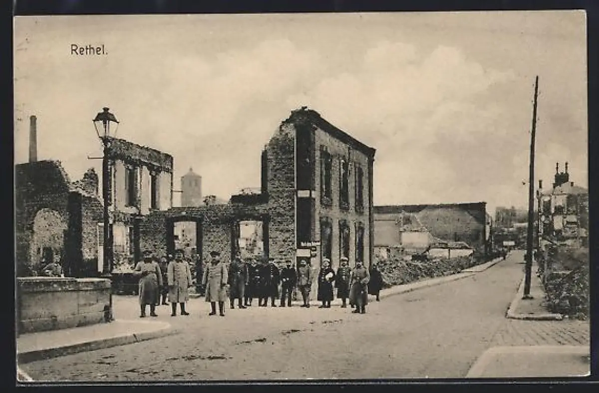 AK Rethel, deutsche Soldaten zwischen den Ruinen