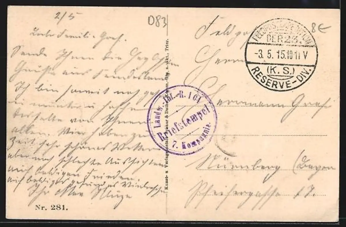 alte Ansichtskarte, gelaufen 1915, Eckknick li. unten, guter Zustand