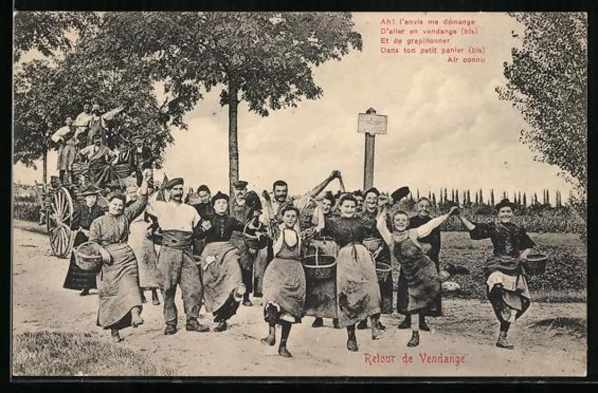 AK Retour de Vendange, Winzer kehren fröhlich von der Arbeit heim