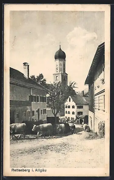 AK Rettenberg i. Allgäu, Strassenpartie mit Rindern