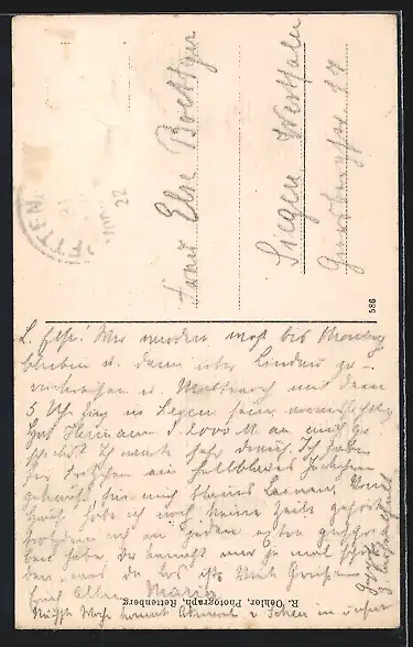 alte Ansichtskarte, gelaufen, Briefmarke entfernt, rückseitig Oberflächenschaden, guter Zustand