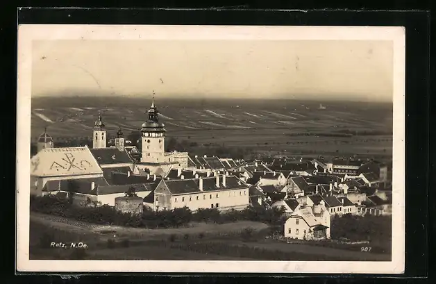 AK Retz /N. Ö., Ortsansicht mit Turmgebäude