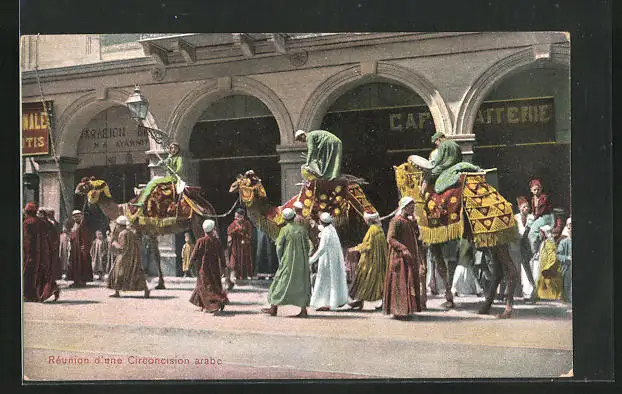 AK Réunion d`une Circoncision arabe, Araber auf Kamelen